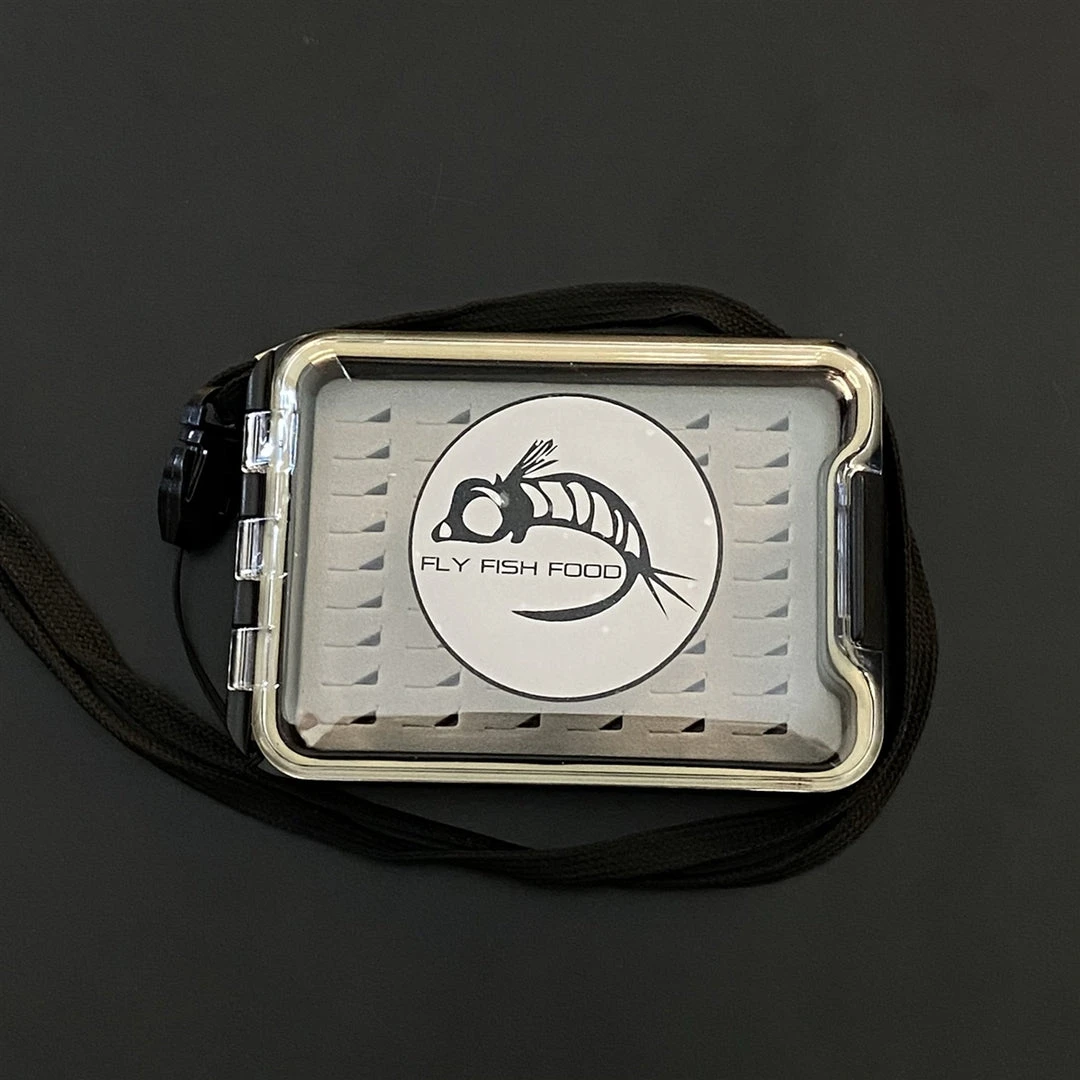 Adamsbuilt FLY FISH FOOD LOGO FLY BOX, CLEAR SINGLE SIDED – SMALL W/ LANYARD, EASY GRIP FOAM Fly Boxes