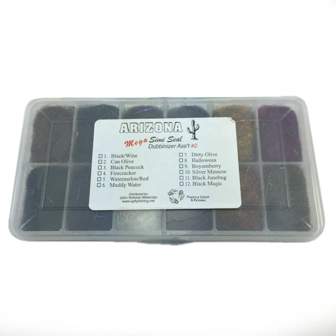 A dubbing collection of some of the more popular Arizona Mega Simi Seal dubbing colors.